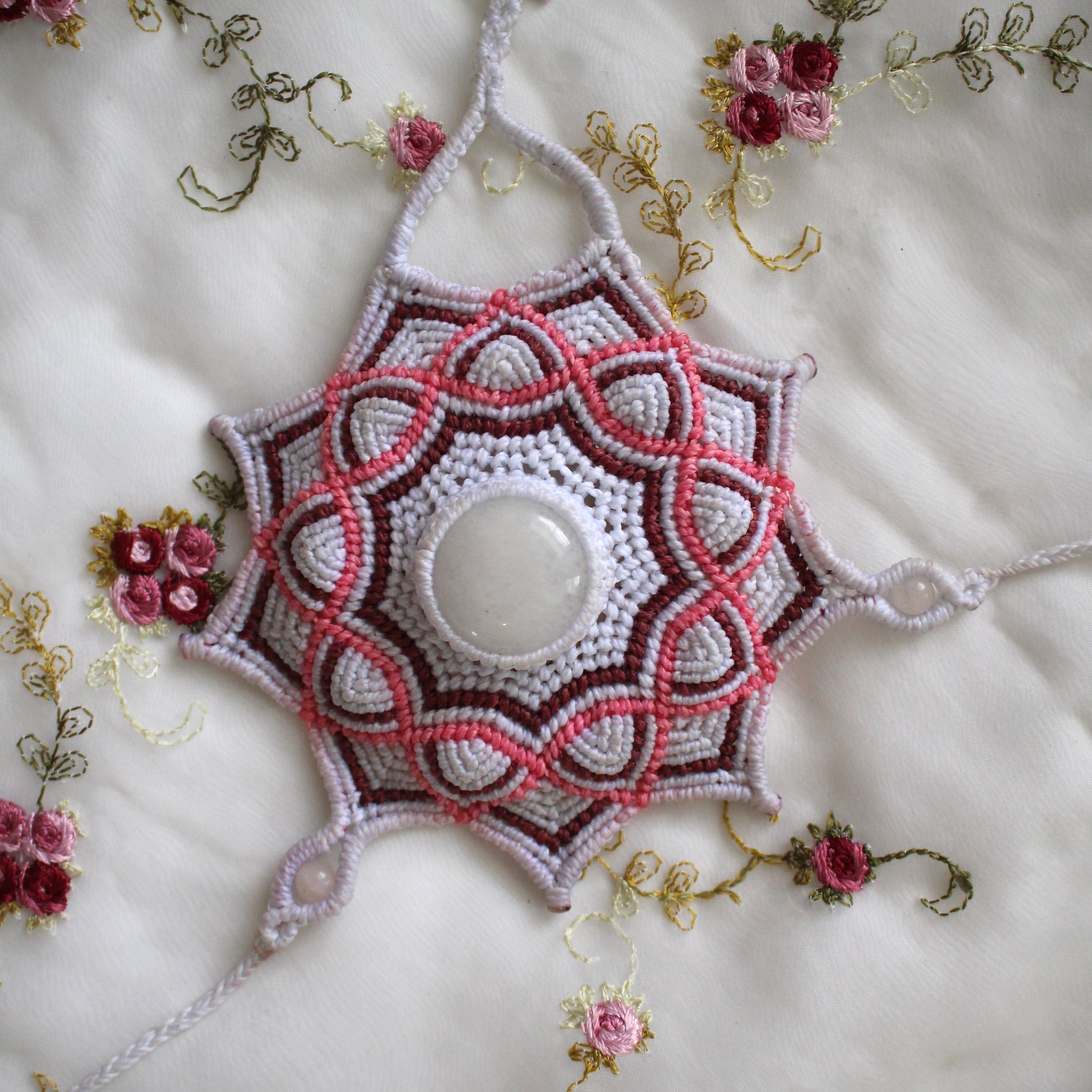 𖦹 Medium: Milky Quartz Crystal & Macrame